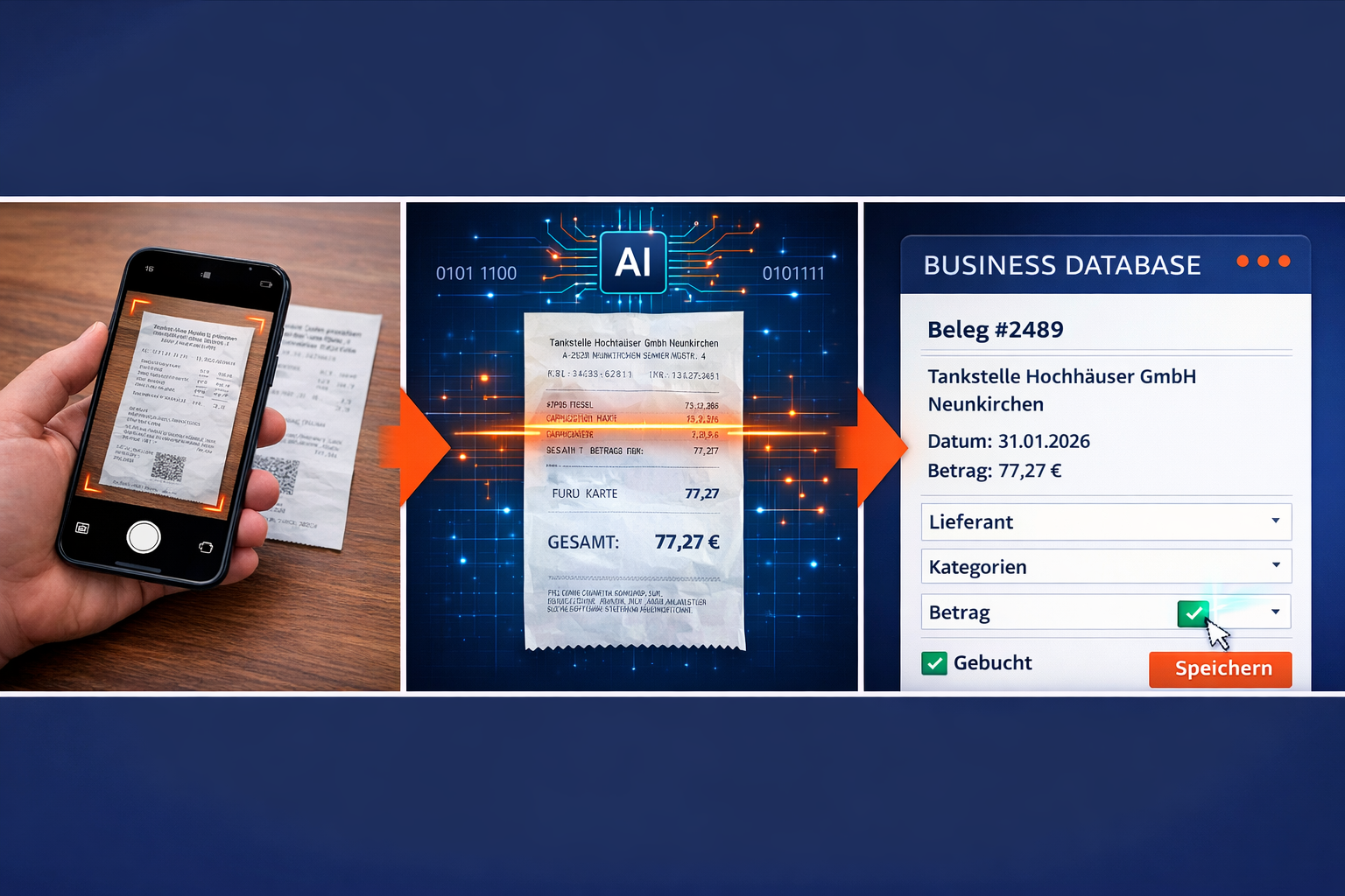 Mit der business db vereinst Du Buchhaltung, Prozesse und KI in einem System.